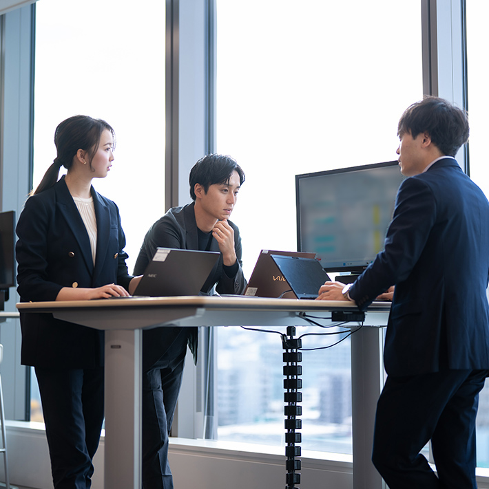 私は事務局として、企業文化の異なる各社が本音で協議できる場づくりを担っています。業務は、構想整理や会議運営、実証実験の推進、経営陣へのレポーティングなど多岐にわたります。経営視点が求められる全社的な重要プロジェクトに、若手のうちから携われていることは大きな責任であり、誇りです。単なる調整役にとどまらず、”未来の物流”づくりを進めているという手応えを日々、感じています。