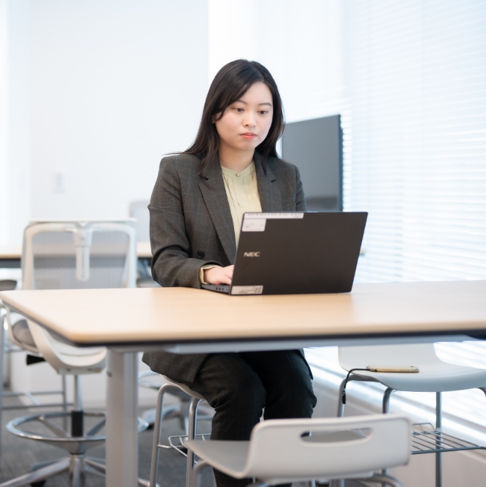 2021年入社、ロジスティクス本部センター運営管理グループの松戸センターへ配属になり、在庫管理業務を担当。その2年後、現在のSCMサポート本部発注管理第一グループへ異動になり、加食汎用物流センターの発注業務を担当。
