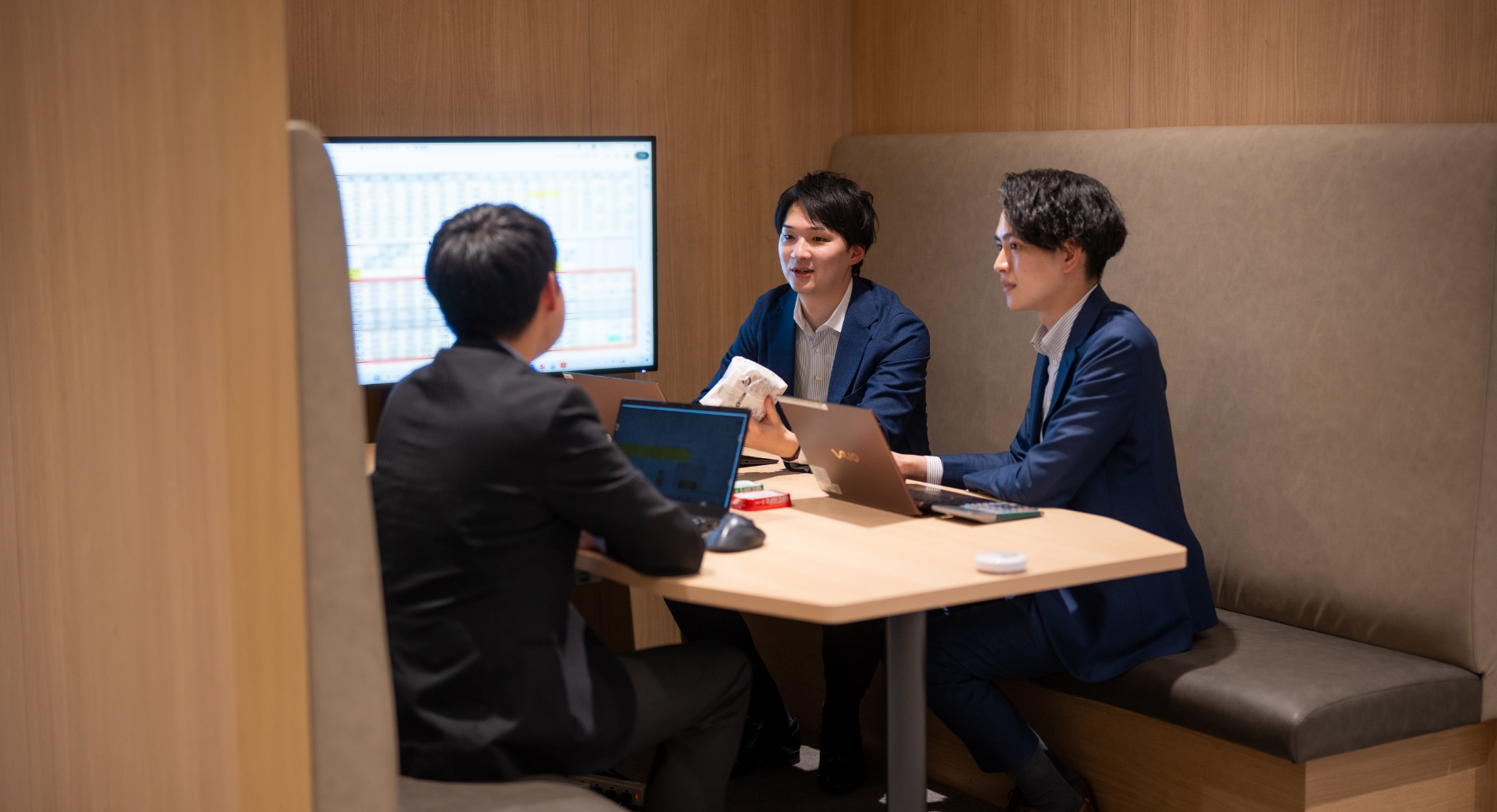 - スーパーマーケットの本部着、2ヵ月先の特売販促に関してバイヤーと商談