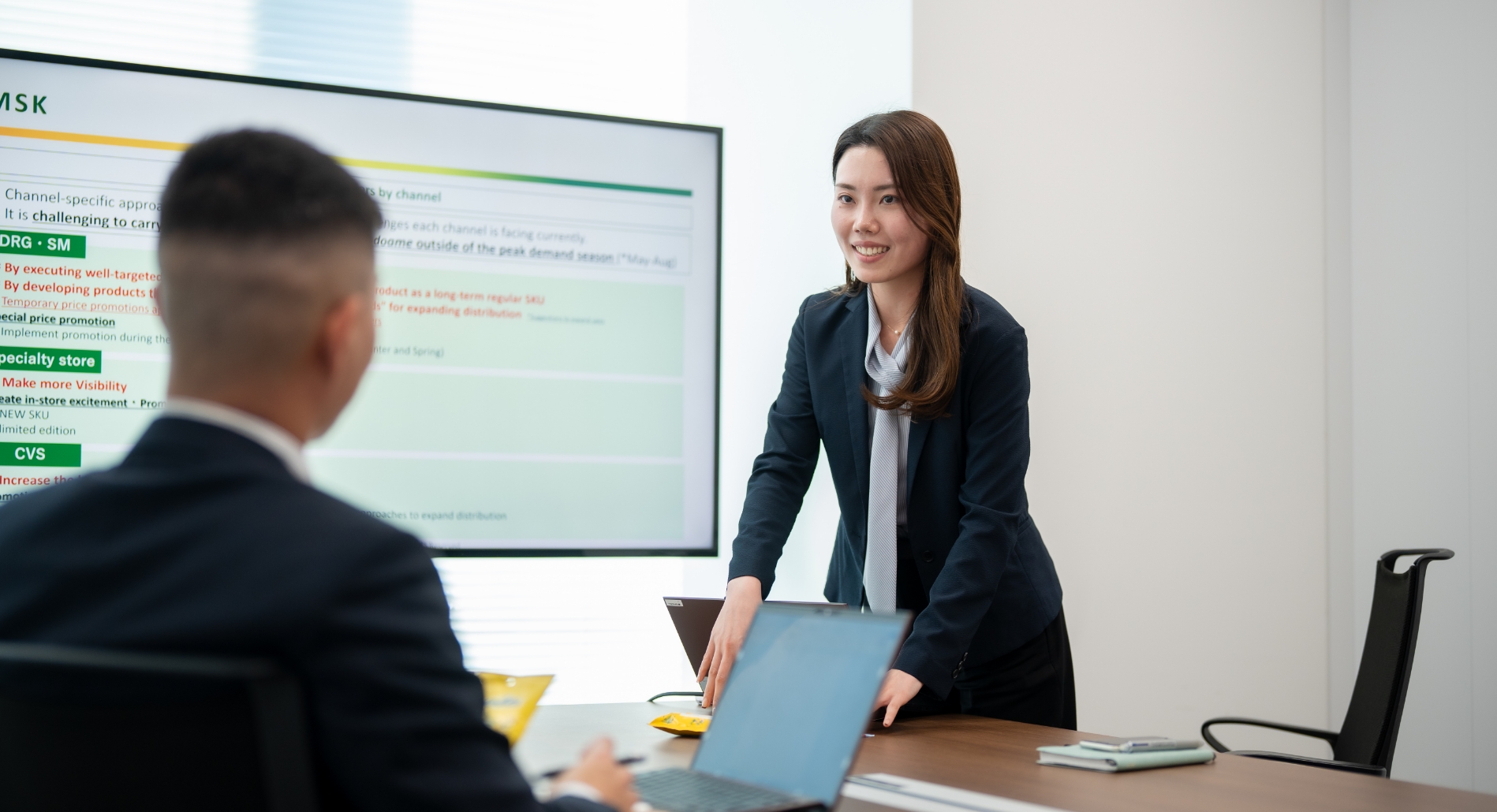 今の業務は、輸入実務、市場分析、マーケティング販促や販売など幅広い知識を身に付けられる機会があるため、この知識を活かしてさらに多様な経験を積みたいと考えています。また、他の菓子ブランド、菓子以外の加工食品カテゴリにも挑戦し、異なるニーズや提案方法を学びたいと考えています。世界でも知られている有力ブランドを取扱っている会社として、海外サプライヤーから信頼してもらい、取引を続けられることに責任とやりがいを感じています。そのうえで、消費者の目線に立って自分の考えも持ち、商品企画やブランド認知度向上の為に最適な施策を実践することで、着実に結果を残していきたいと考えています。